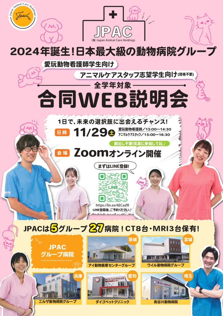 危機管理学部2025/11/29 - 2025/11/29【動物看護師向け】JPACグループ合同WEB説明会#26卒#27卒#28卒#29卒#オンライン#動物危機管理学科