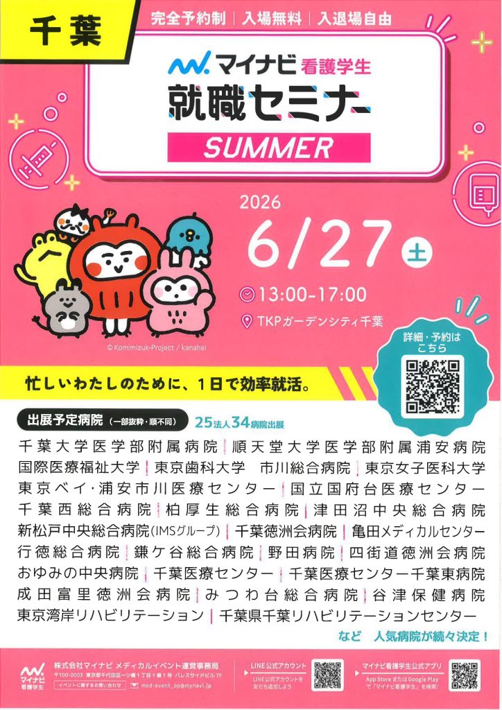 6月27日 看護学生就職セミナー【サマー】 千葉会場 – マイナビ看護学生就職セミナー合同病院説明会