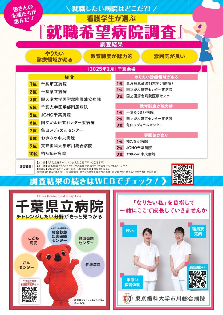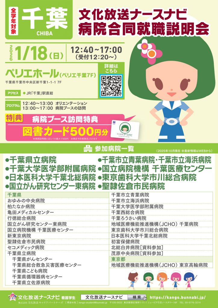 文化放送ナースナビより千葉県で実施の病院合同就職説明会の案内が届きました。