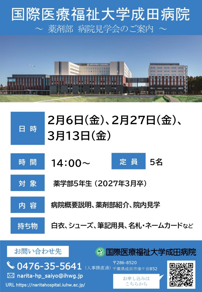 【薬剤師:病院見学会】国際医療福祉大学成田病院