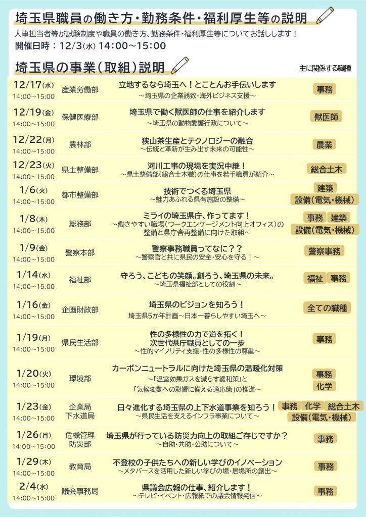 埼玉県人事委員会事務局より、埼玉県職員仕事紹介セミナーの案内が届いています。